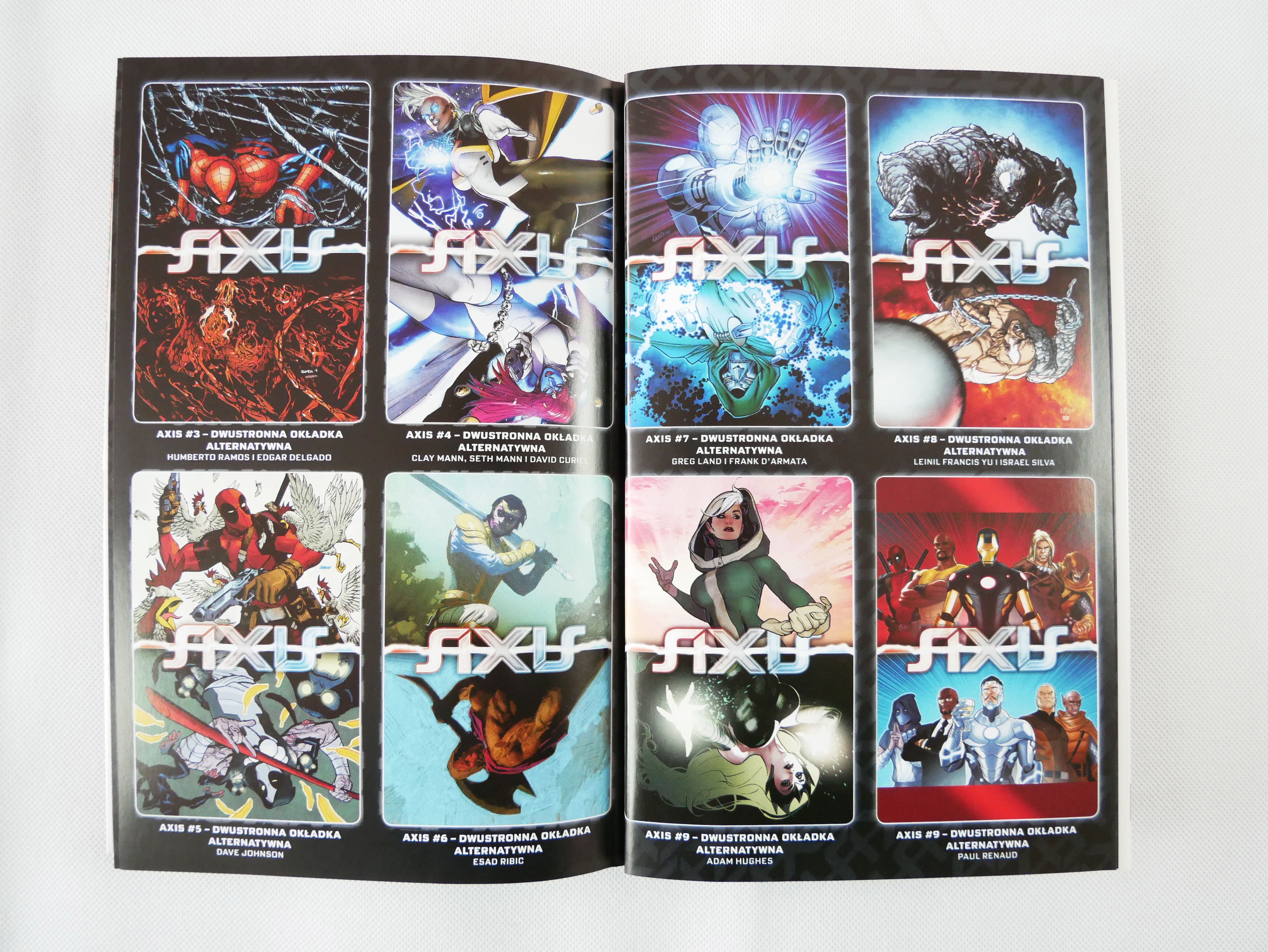 Historia została pierwotnie opublikowana w zeszytach Avengers & X-Men: Axis #1-9 (grudzień 2014 roku luty 2015 roku).