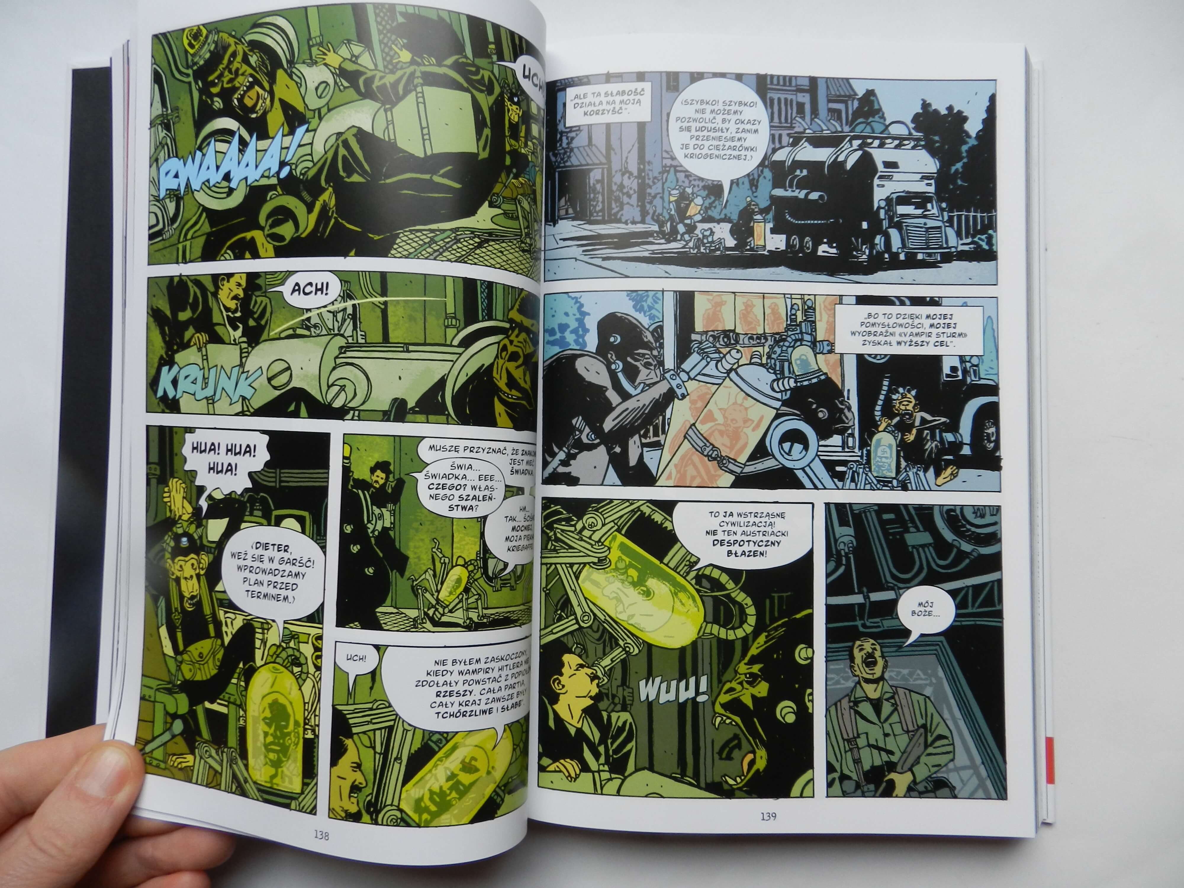 Album mistrza komiksu amerykańskiego, autora bestsellerowego cyklu Hellboy, Mike’a Mignoli. Agenci BBPO – Biura Badań Paranormalnych i Obrony – zajmują się tropieniem wszelkich stworzeń i rzeczy nie z tego świata. Najsłynniejszy pracownik biura to Hellboy. W 1946 roku do zajętego przez aliantów Berlina przybywa szef BBPO, profesor Trevor Bruttenholm, by zebrać jak najwięcej danych o nazistowskich badaniach nad okultyzmem, magią i bioinżynierią. Wpada na ślad straszliwego projektu Niemców, znanego pod kryptonimem „Vampir Sturm”. By rozwiązać tę zagadkę agenci BBPO będę musieli zaryzykować nie tylko życie... Świetnie skonstruowana fabuła trzyma w napięciu i znakomicie wykorzystuje motyw faszystowskiej obsesji: połączenia bioinżynierii z magią w celu stworzenia broni doskonałej. Atmosfera wszechobecnej tajemnicy i przygody niczym z hollywoodzkich filmów powodują, że nie sposób oderwać się od lektury.