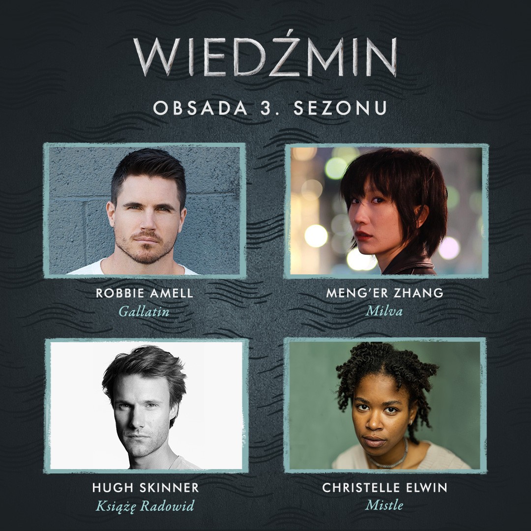 W głównej obsadzie serialu wracają oczywiście Henry Cavill (Geralt z Rivii), Anya Chalotra (Yennefer z Vengerbergu) i Freya Allan (księżniczka Cirilla z Cintry). Do gwiazd produkcji dołączy jednak kilka nowych nazwisk. W trzecim sezonie na ekranie pojawią się między innymi Robbie Amell, który pojawi się w serialu jako Gallatin, Meng'er Zhang, którą wystąpi jako Milva, Hugh Skinnger wcielający się w Księcia Radowida, a także Christelle Elwin, która zagra Mistle.