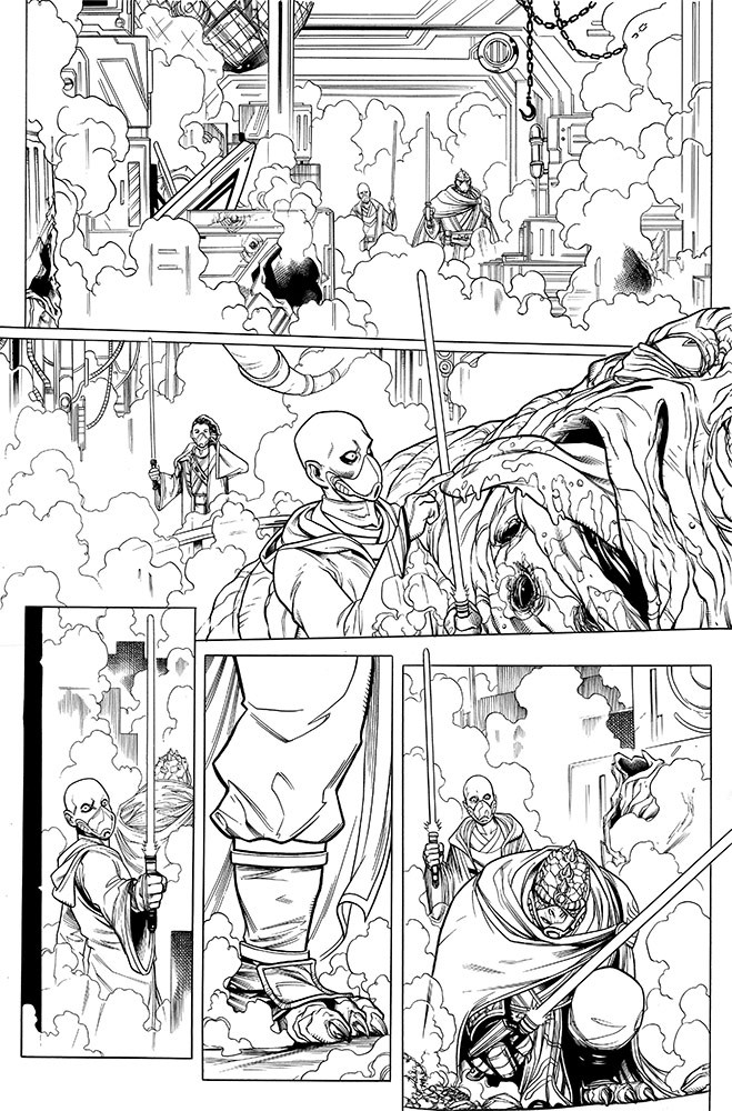Mimo, że od premiery pierwszego zeszytu „Star Wars: The High Republic” wciąż dzieli nas ponad miesiąc, Marvel udostępnił w sieci okładkę oraz kilka niepokolorowanych stron z drugiego rozdziału. Tym razem mamy okazję przyjrzeć się mistrzowi Jedi Sskeerowi i jego padawance, a zarazem głownej bohaterce serii: Keeve Trennis.