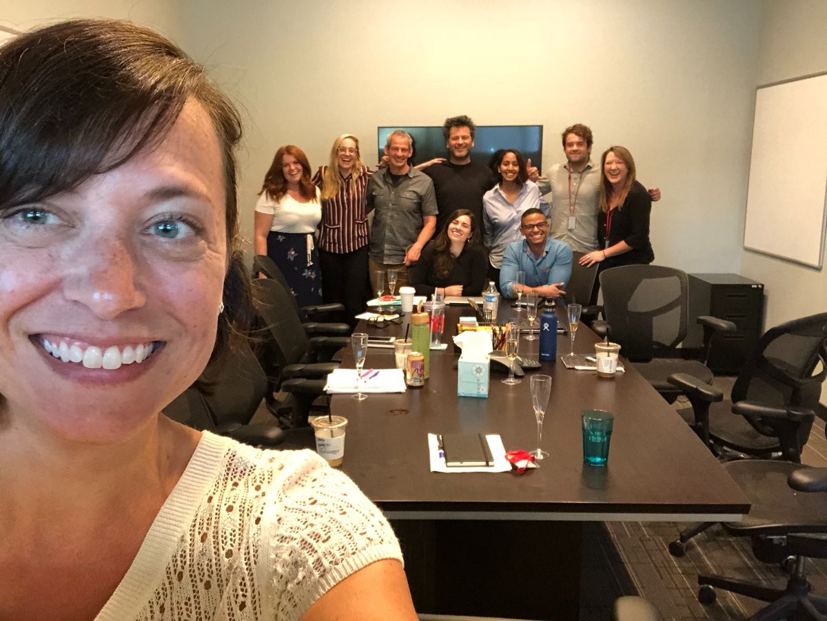 Oprócz Hissrich na zdjęciu znaleźli się Jenny Klein (Jessica Jones), Sneha Koorse (Daredevil), Declan de Barra (The Originals) i Clare Higgins. Pozostała piątka osób na zdjęciu nie została jeszcze rozpoznana.