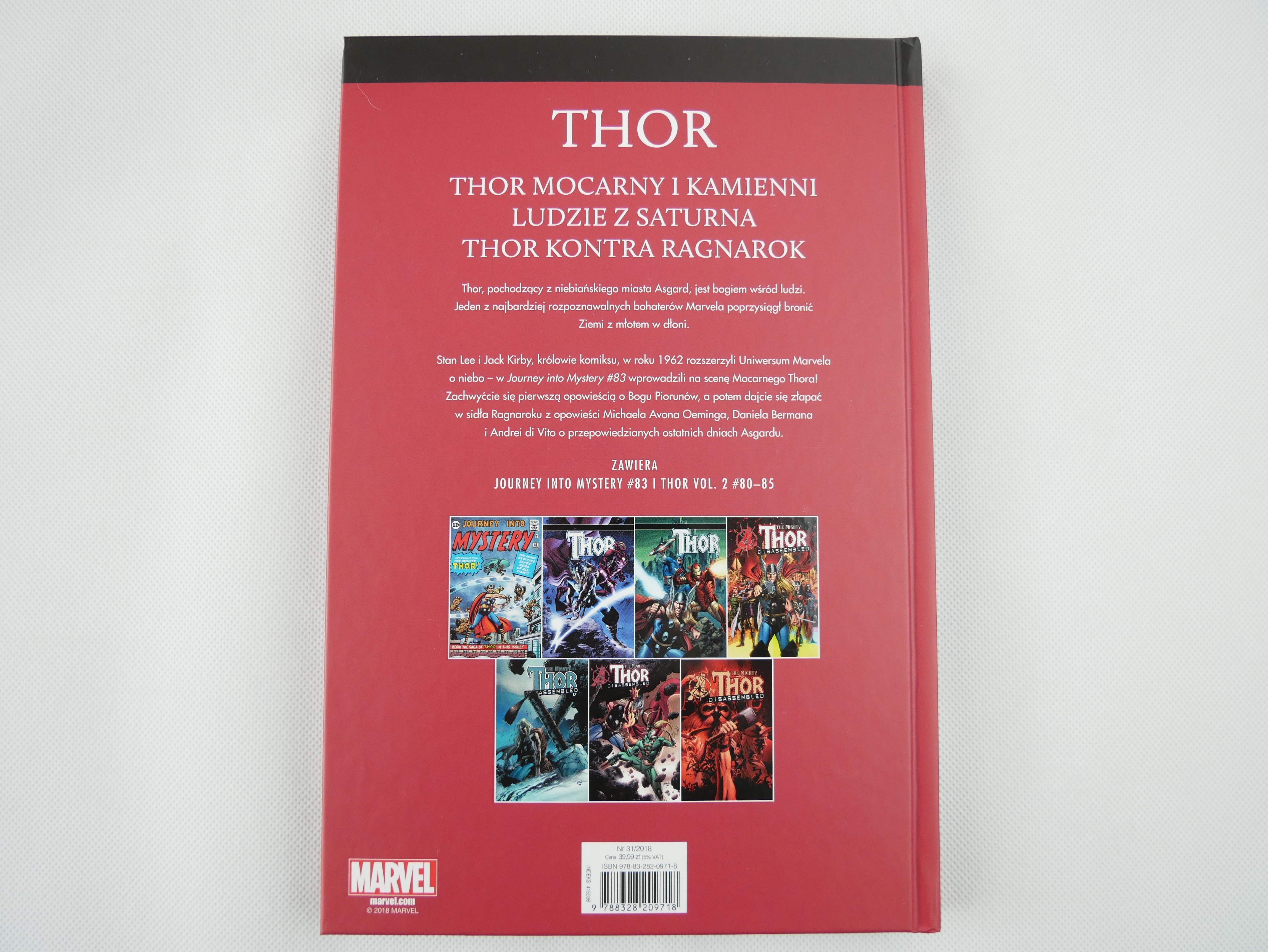 Stan Lee i Jack Kirby, królowie komiksu, w roku 1962 rozszerzyli Uniwersum Marvela o niebo - w Journey into Mystery #83 wprowadzili na scenę Mocarnego Thora! Zachwyćcie się pierwszą opowieścią o Bogu Piorunów, a potem dajcie się złapać w sidła Ragnaroku z opowieścią Michaela Avona Oeminga, Daniela Bermana i Andrei di Vito o przepowiedzianych ostatnich dniach Asgardu.