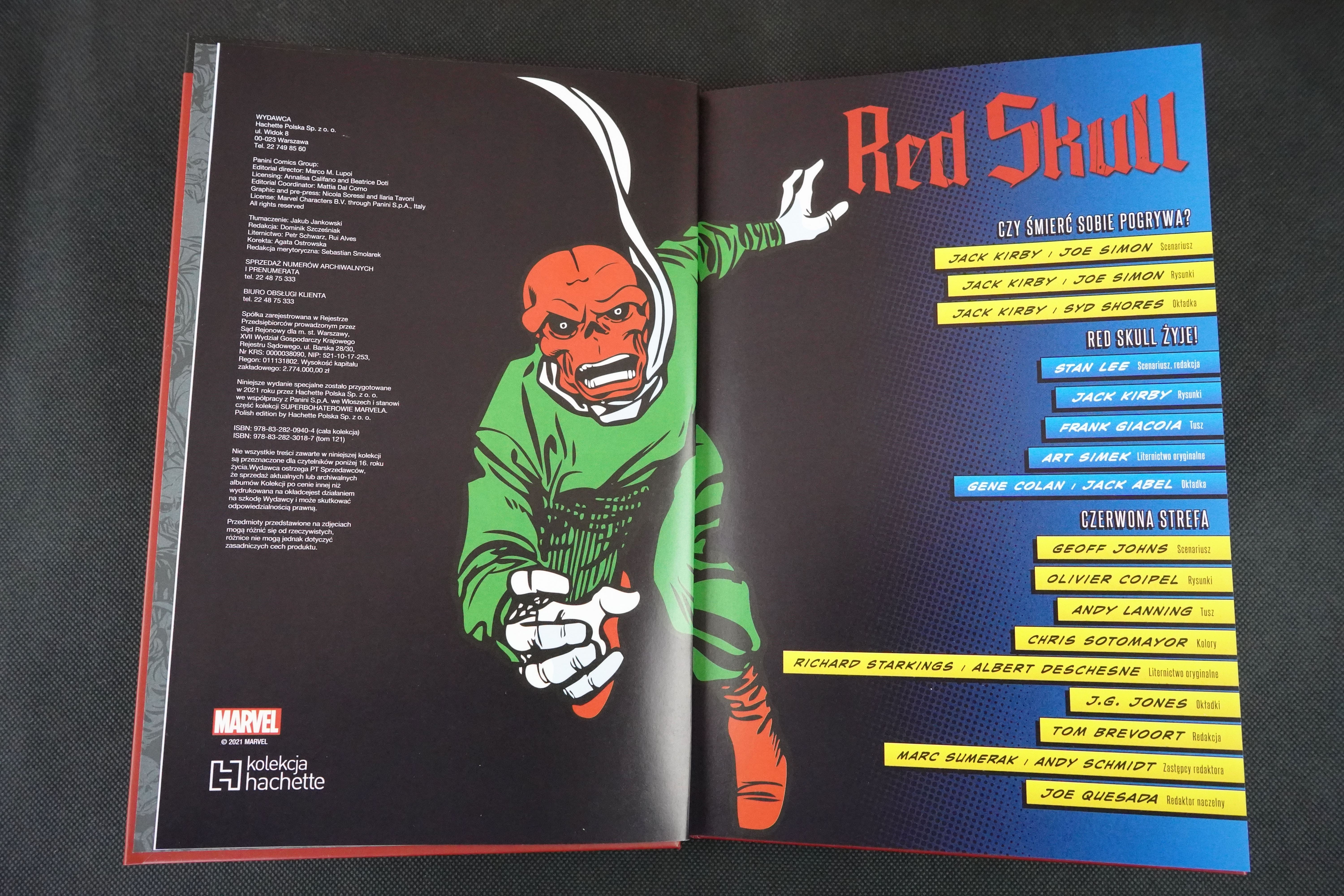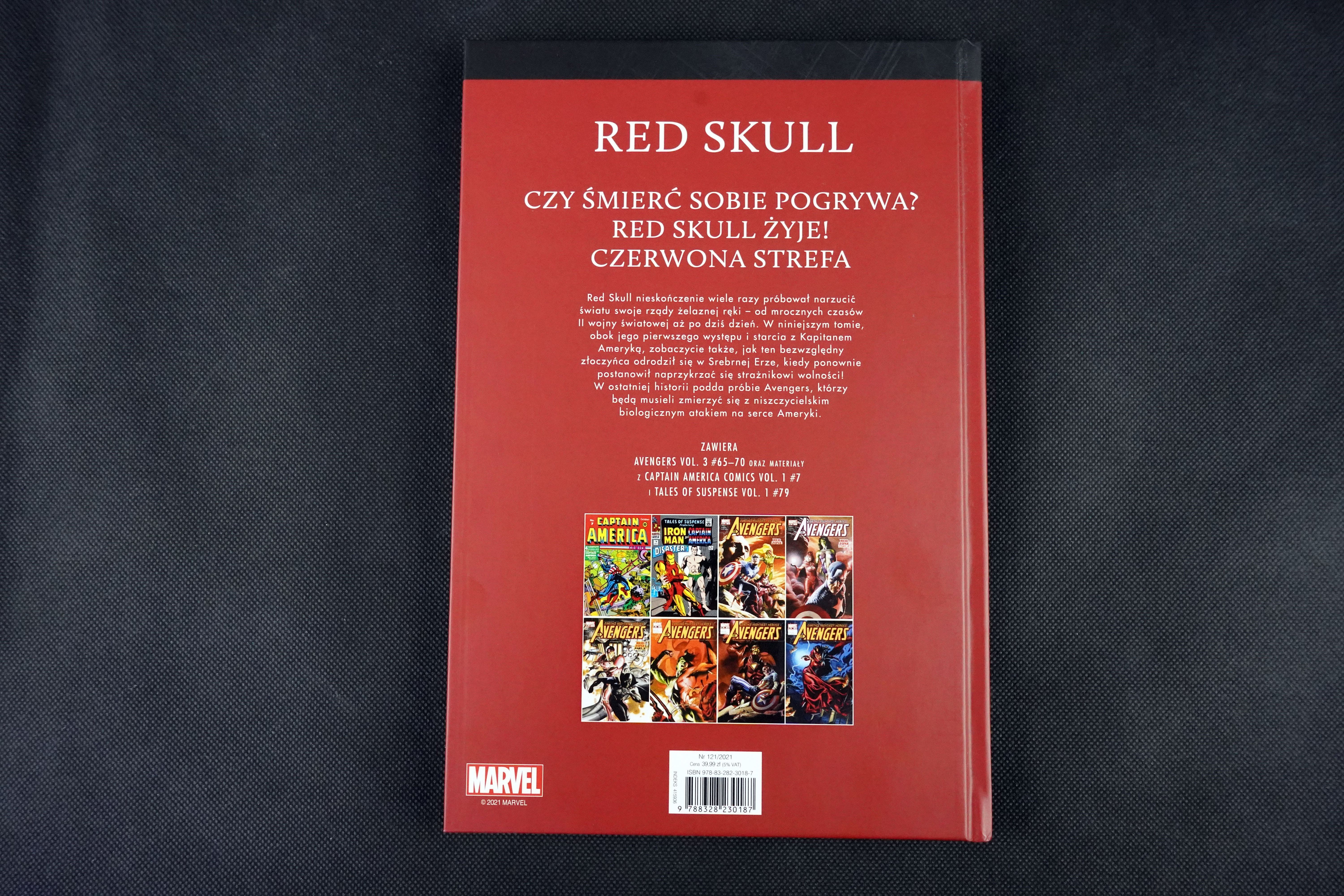 Red Skull nieskończenie wiele razy próbował narzucić światu swoje rządy żelaznej ręki – od mrocznych czasów II wojny światowej aż po dziś dzień. W niniejszym tomie, obok jego pierwszego występu i starcia z Kapitanem Ameryką, zobaczycie także, jak ten bezwzględny złoczyńca odrodził się w Srebrnej Erze, kiedy ponownie postanowił naprzykrzać się strażnikowi wolności! W ostatniej historii podda próbie Avengers, którzy będą musieli zmierzyć się z niszczycielskim biologicznym atakiem na serce Ameryki.