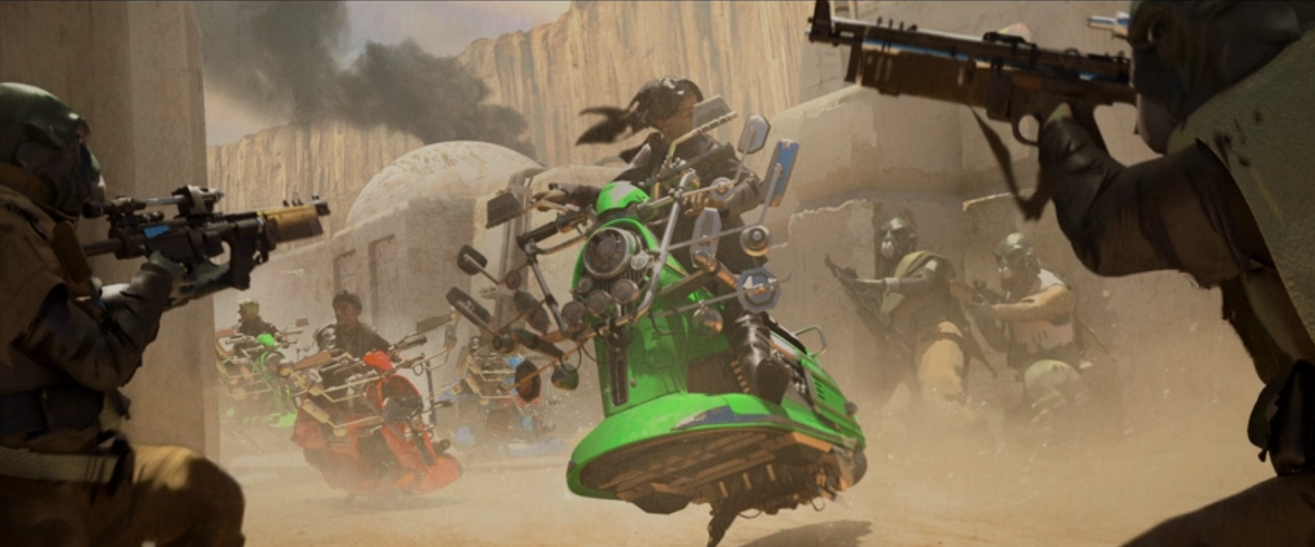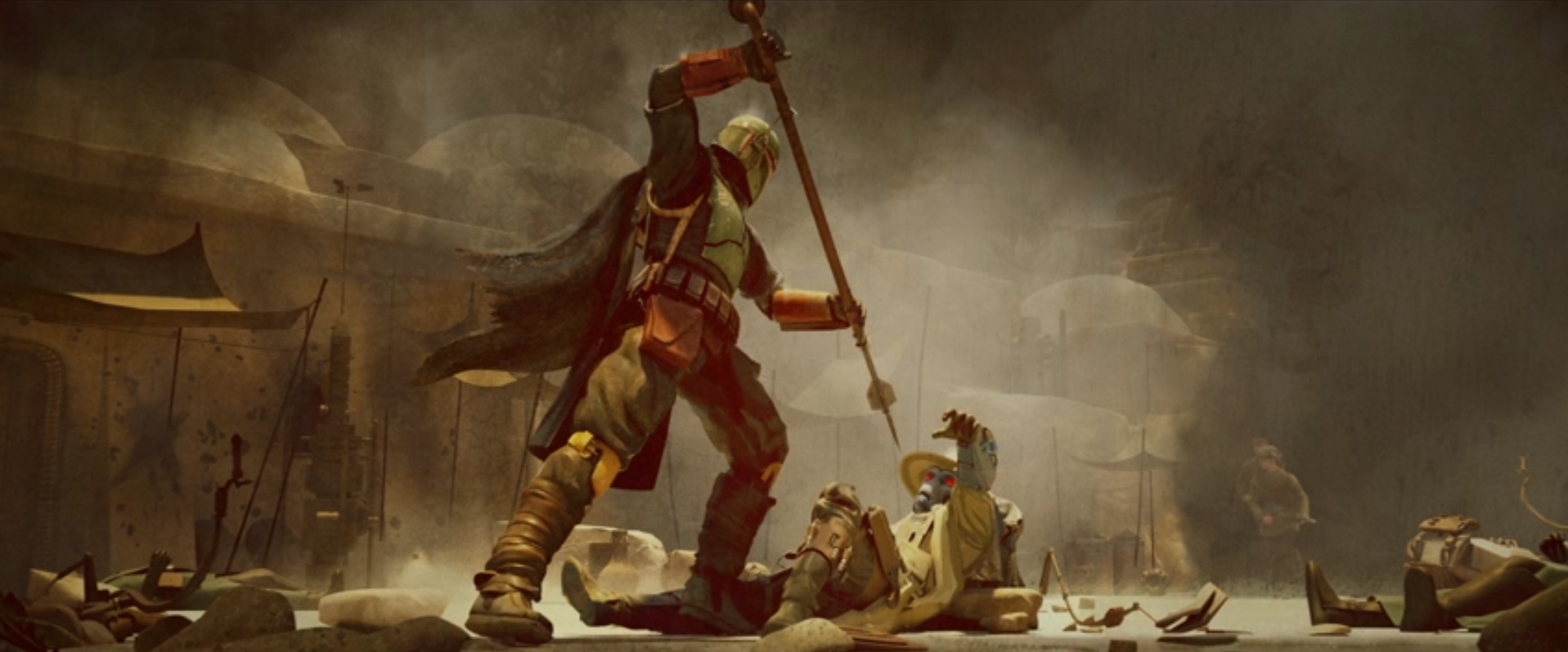 Wraz z premierą siódmego odcinka „The Book of Boba Fett” na Disney+, widzowie otrzymali kolejny i zarazem ostatni zestaw grafik koncepcyjnych, które pojawiły się w napisach końcowych serialu. Rzućcie okiem na spoilerowy montaż przedstawiający preprodukcyjne wyobrażenia najważniejszych scen finału sezonu.