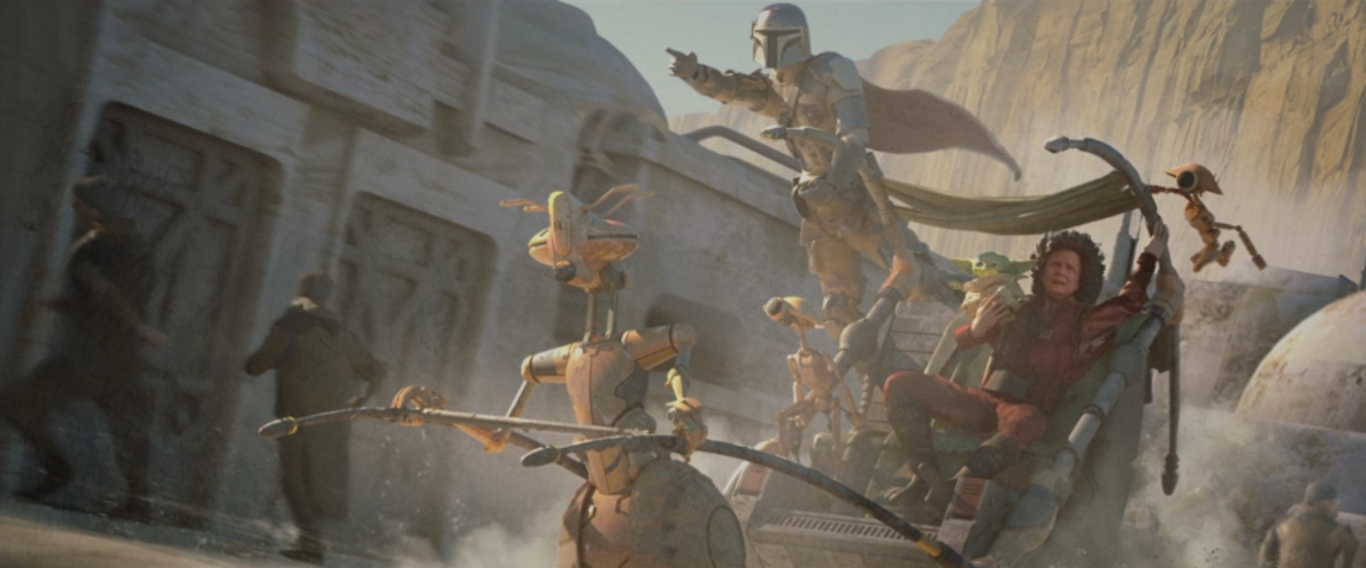 Pewnym zaskoczeniem rozdziału (choć działającym raczej na jego niekorzyść) było doprowadzenie do ponownego spotkania Dina Djarina z Grogu. Podobnego zwrotu fabularnego należało się oczywiście prędzej, czy później spodziewać (zwłaszcza po ubiegłotygodniowym dylemacie przed, którym twórcy postawili Baby Yodę), ale wyprowadzenie go jeszcze w tym serialu (zamiast odczekania do trzeciego sezonu „The Mandalorian”) – co gorsza, w charakterze wątku pobocznego – rodzi już pewne wątpliwości, co do ogólnego zamysłu na „Księgę Fetta”. Dodajmy, że na chwilę obecną trudno powiedzieć, czy serial doczeka się rozwinięcia na kolejne sezony, skoro jego główną atrakcją okazały się dygresje związane poprzednim serialem Jona Favreau. Odpowiedzi powinniśmy poznać w najbliższym czasie. Tymczasem, rzućcie okiem na ostatni zestaw grafik koncepcyjnych.